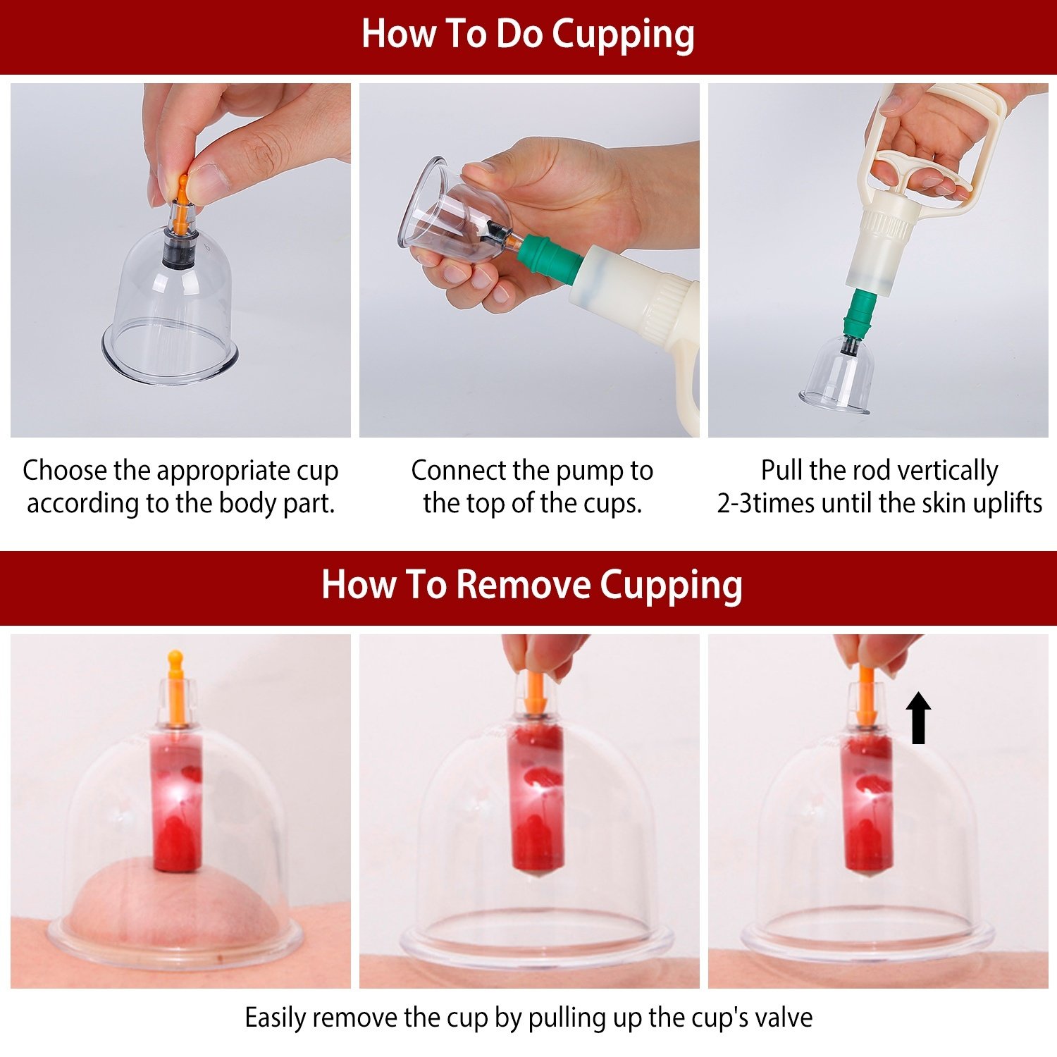 *Easy To Use*:Easy to use for home self-healing. Clean your body and remove body hair before cupping. Then follow the instruction to do cupping. After cupping therapy there will be a variety of skin reactions. Don’t worry. These bruises are usually painless and will disappear within a few days of treatment.