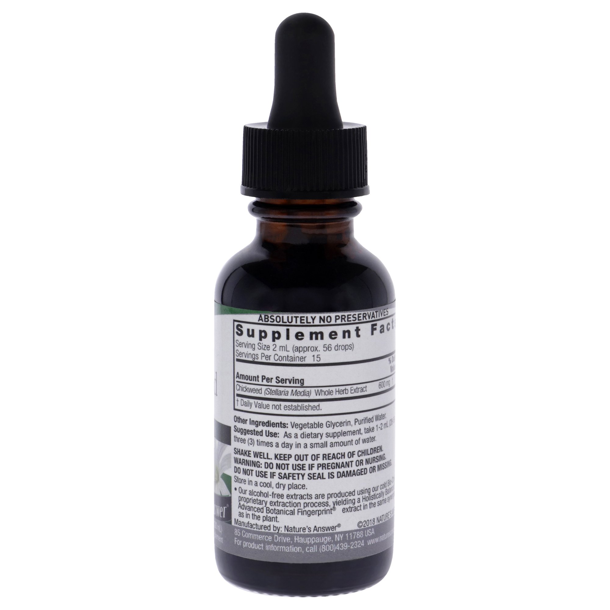 Nature�s Answer Liquid Chickweed Extract is MUCH MORE CONCENTRATED than Liquid Tinctures. Advanced Botanical Fingerprint Technology. Super Concentrated- made from 2000 mg whole herb/serving. Bio-Chelated Cold Extraction Process.
