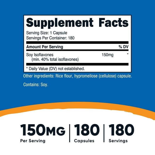 Nutricost Soy Isoflavones contains 180 "veggie" capsules per bottle. Each capsule contains 150mg of soy isoflavones. Isoflavones are naturally occurring plant compounds that are particularly concentrated in soybeans. Nutricost Soy Isoflavones are non-gmo, gluten free, and made in a GMP compliant, FDA registered facility. Natural color variation may occur in this product. Nutricost, located and headquartered in the USA, only uses the best ingredients to ensure maximum quality and to help you feel your best! By keeping our supplement recipes simple and clean, you get the best experience possible with Nutricost. Our supplements are manufactured in a GMP-compliant and FDA-registered facility; and each batch of every product is tested by independent, ISO-accredited laboratories. These statements have not been evaluated by the Food and Drug Administration. This product is not intended to diagnose, treat, cure, or prevent any disease.