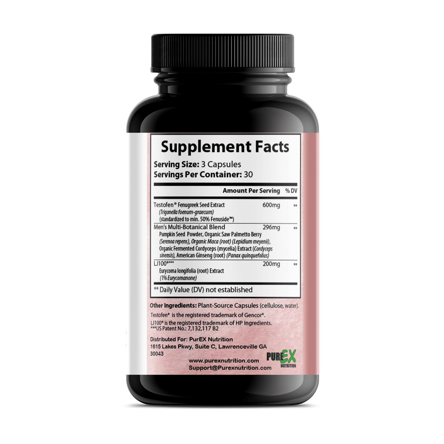 Pure Testosterone contains Tongkat Ali(LJ100®) is a patented adaptogenic nutraceutical, scientific backed with 15 clinical studies. We added Tongkat Ali to help regulate stress hormone and free up more testosterone. Tongkat Ali has been shown to help reduce stress hormone levels(cortisol), which is a hormone that opposes testosterone. Tongkat Ali has also been shown to help free more of your total testosterone by releasing more free testosterone from SHBG(sex-hormone-binding-globulin). LJ100 is an extract of Longjack (Eurycoma longifolia) which has been shown to help support total testosterone levels via the HPG(hypothalamus-pituitary-gonadal) axis.