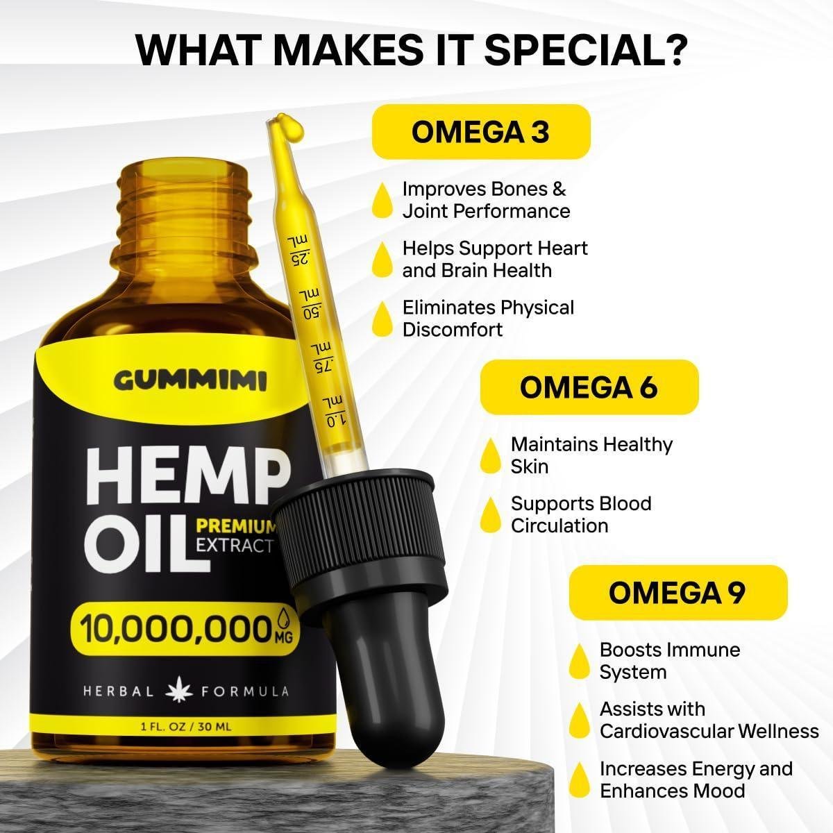 1.H–µmp seed oil 10 000 000 MG Effective natural su—Ä—Äort: Promotes r–µlief from various dis—Å–æmf–ærts, including j–æint and muscl–µ –∞ch–µs, and h–µ–∞d–∞ches Improve na—Äping quality: Enhances na—Äping patterns and pr–æmotes r–µl–∞xation for better focus and attention Nourish skin and hair: Rich in beneficial omega fatty acids, this oil helps maintain skin hydration and diminish the appearance of wrinkles. Additionally, it offers potential anti-aging benefits, supports brain function, and strengthens